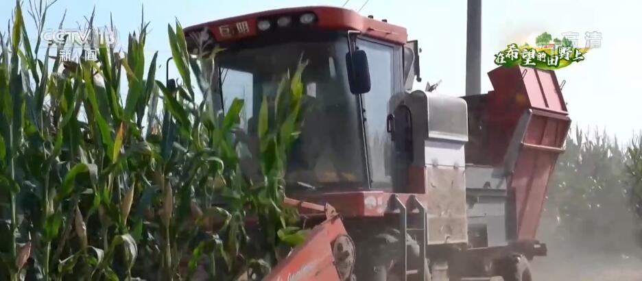 这里是山西夏县胡张乡东张南村的玉米种植基地,玉米植株整齐排列,绿色的叶子衬托着丰硕的果实,大型收割机正开足马力来回穿梭。伴随着机械轰鸣声,一排排成熟的玉米直接进入收割机的粮箱里,秸秆随即被粉碎到地里成了有机肥料。