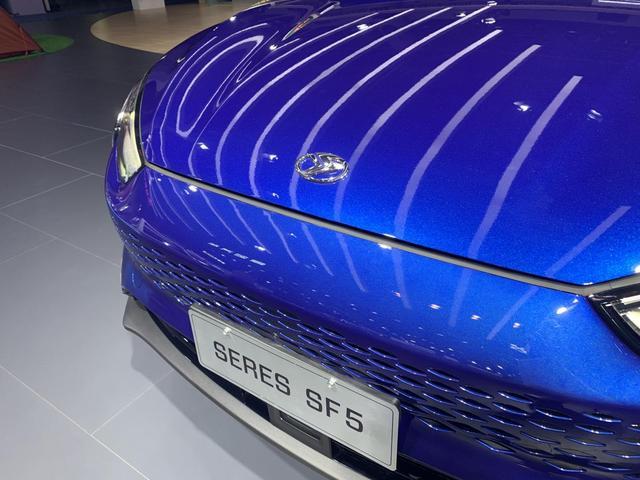 走到侧面,可以看到这辆轿车的车门是一个隐蔽的,充满了科技的气息。侧面的曲线非常漂亮,比起同级别的新能源汽车,要好很多。不过可惜的是,赛力斯SF5的标志并不是很好,看上去也很便宜。
